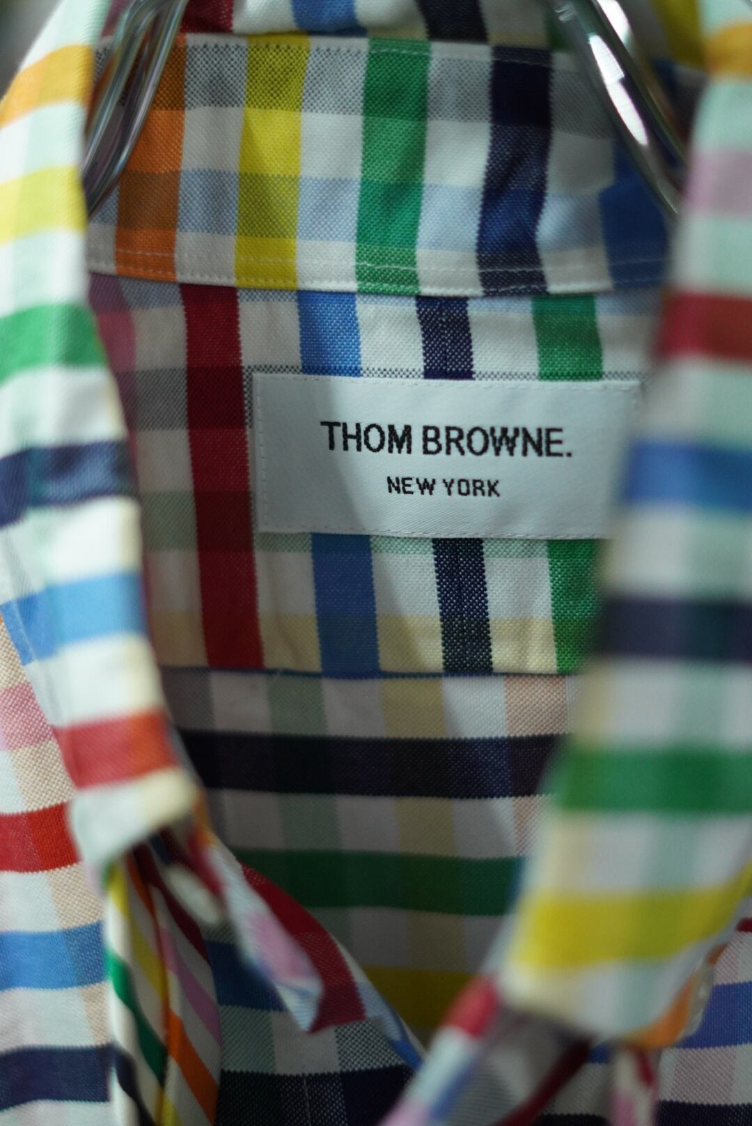 トム・ブラウンらしいユーモアと緻密な構築美が融合した、アイコニックなマルチカラーのギンガムチェックシャツ。付属するネクタイは、柄の流れを巧みに外したストライプパターンで、スタイリングに緩急を与える設計。ベーシックなボタンダウン仕様でありながら、着る者に“自分らしさ”の再構築を促す一着。