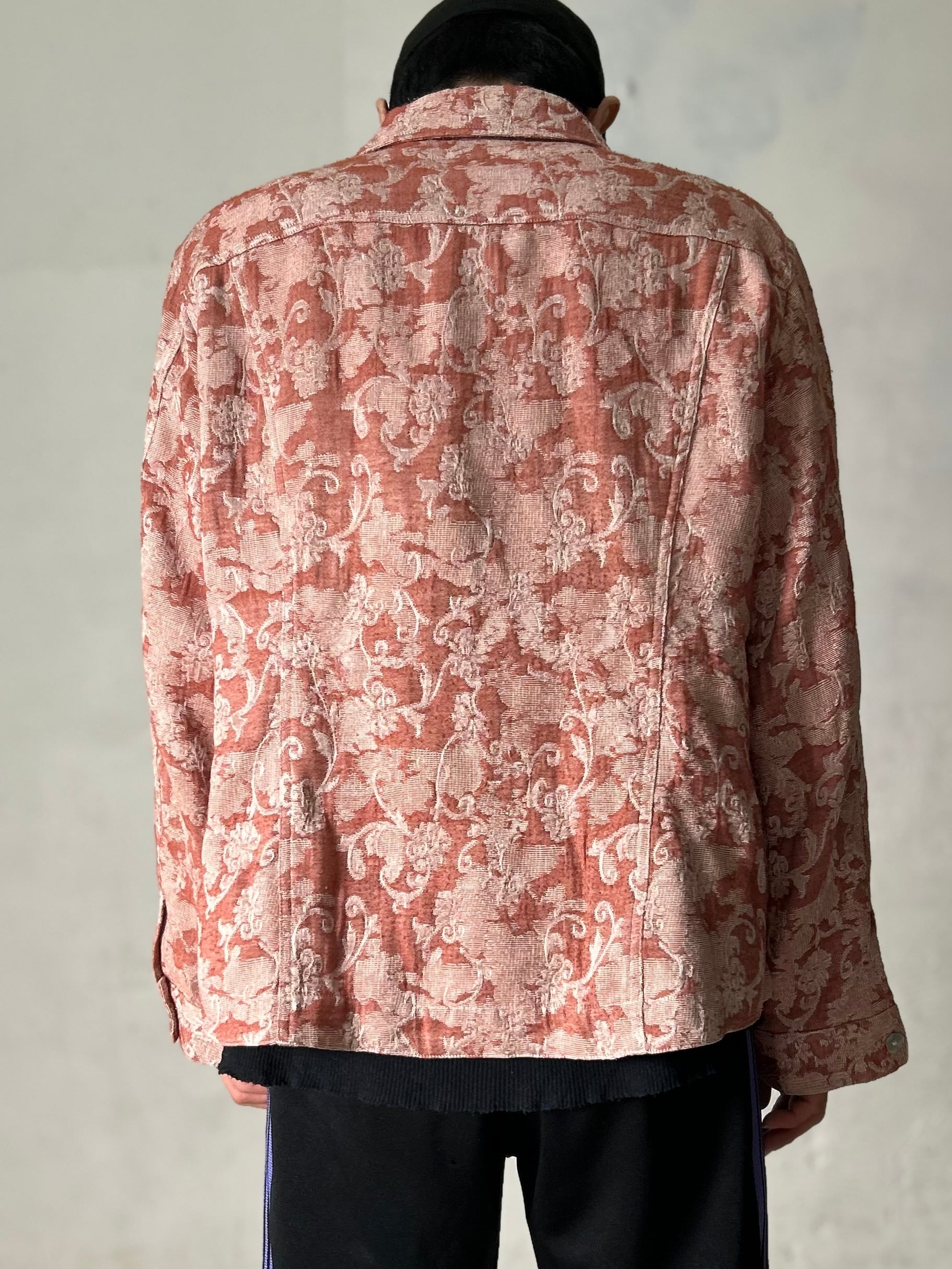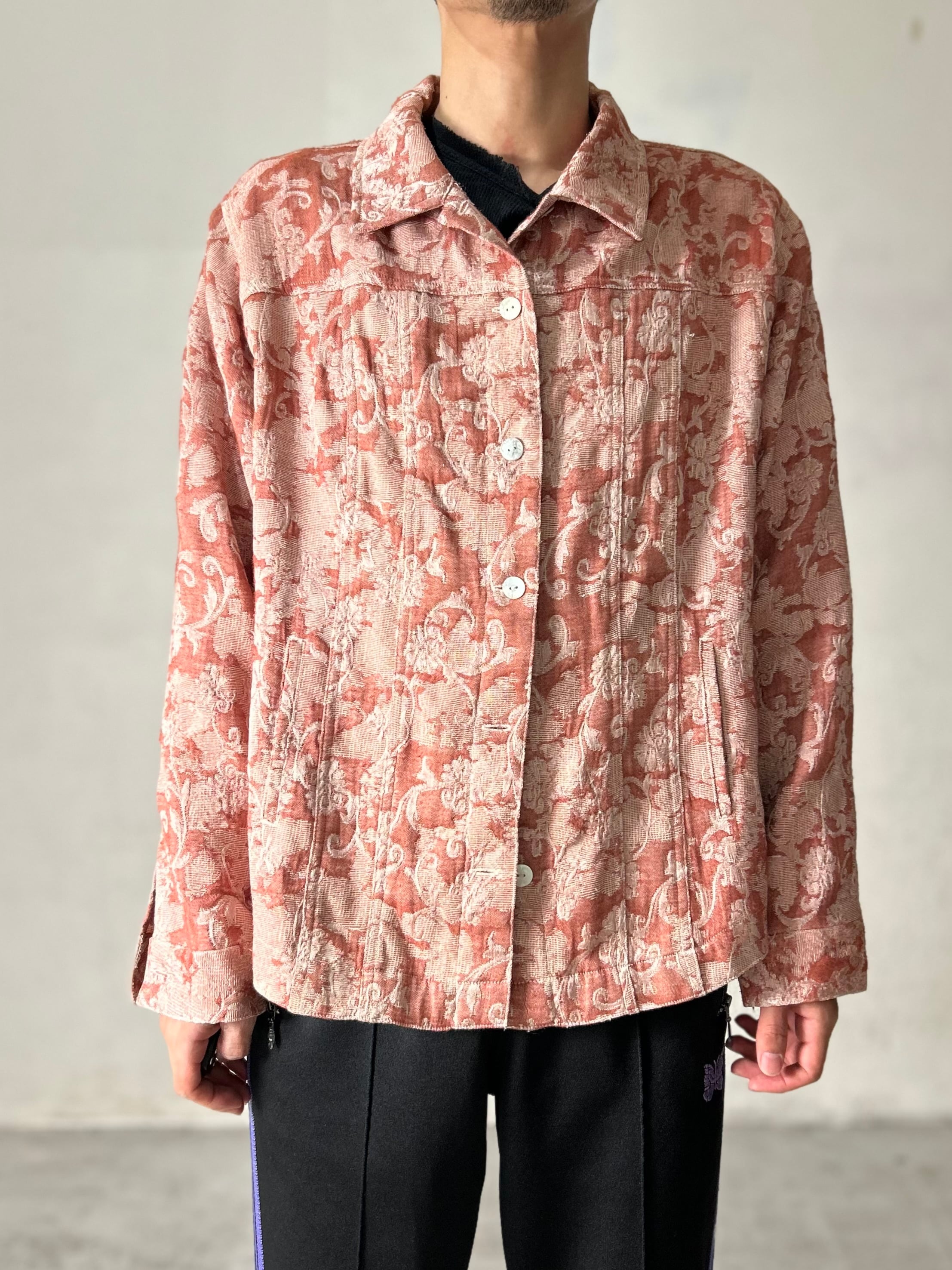 使いやすい淡いピンクのゴブランシャツジャケット。軽い素材感で柔らかくサラッと羽織れるシャツのようなジャケット。