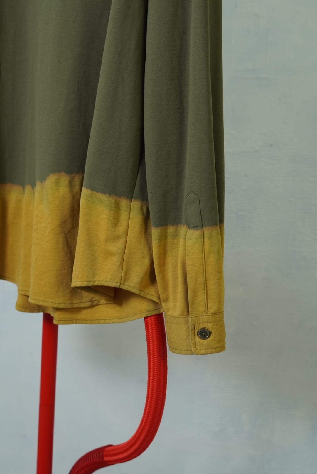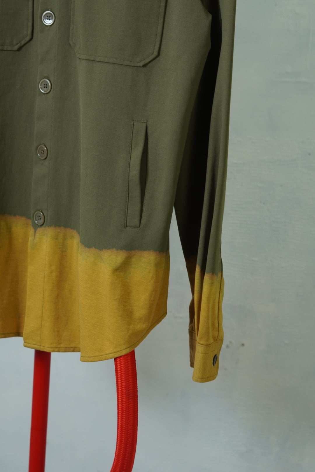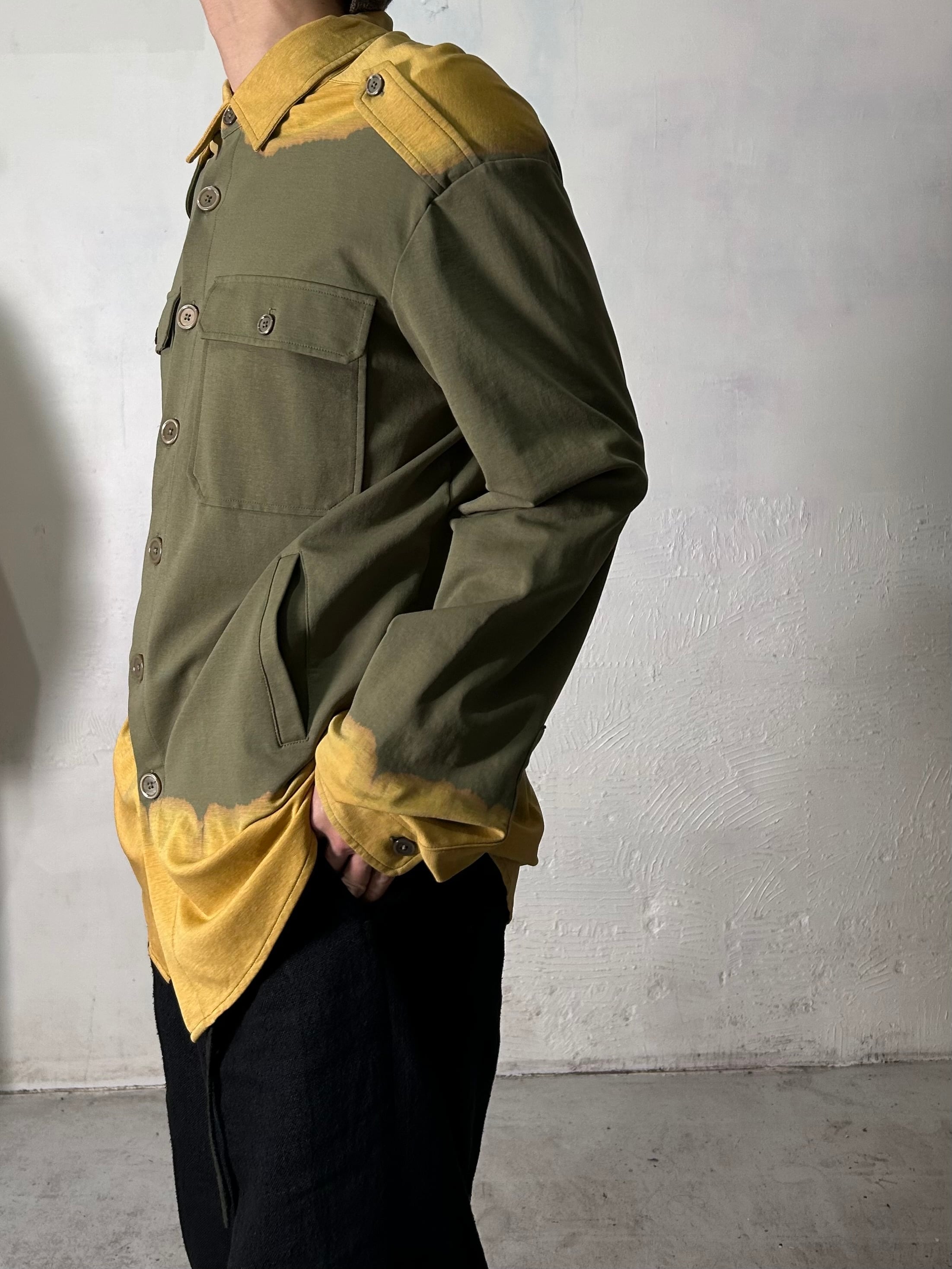 ボディの先端にブリーチを施した様なミリタリーシャツ。