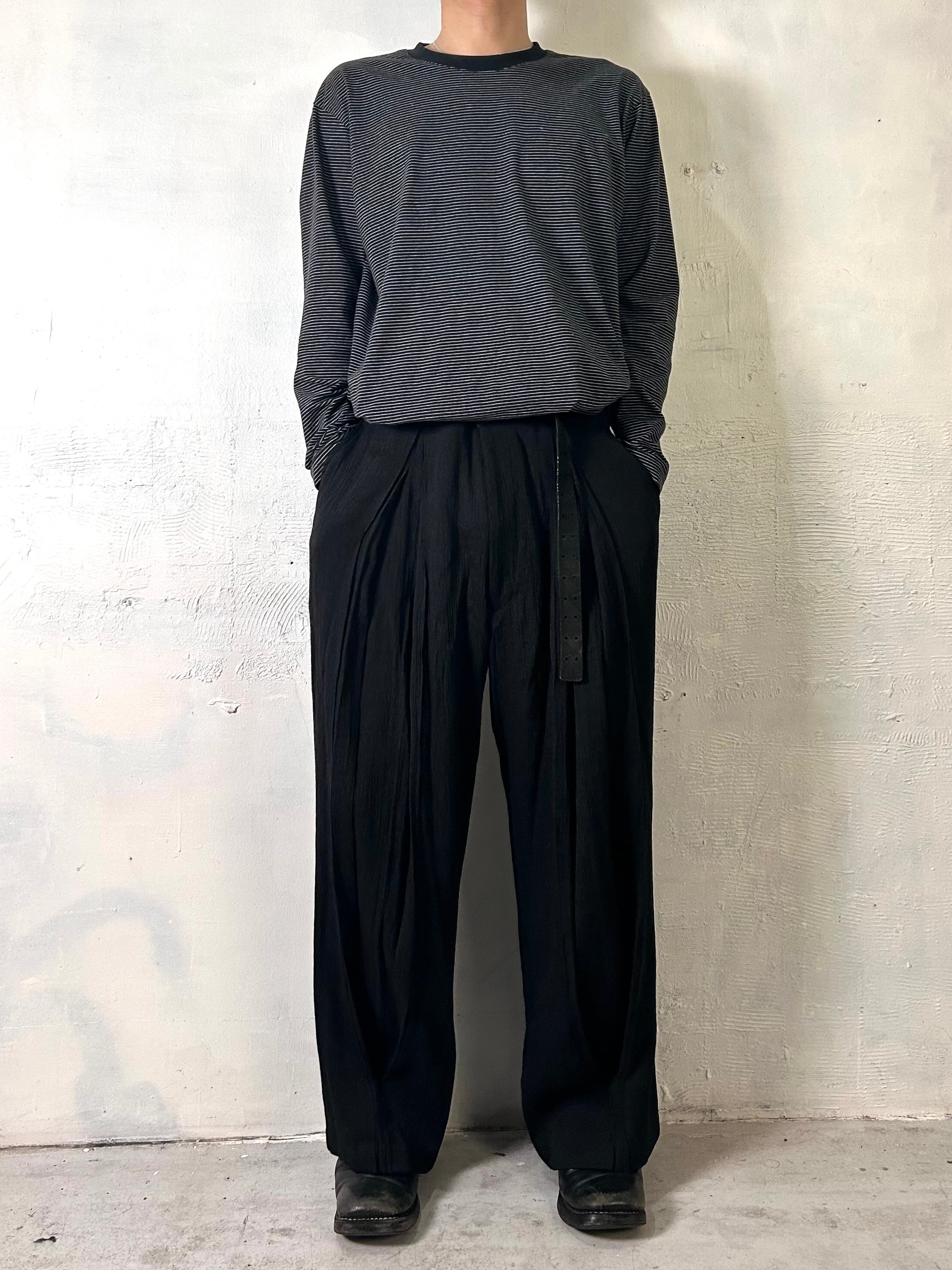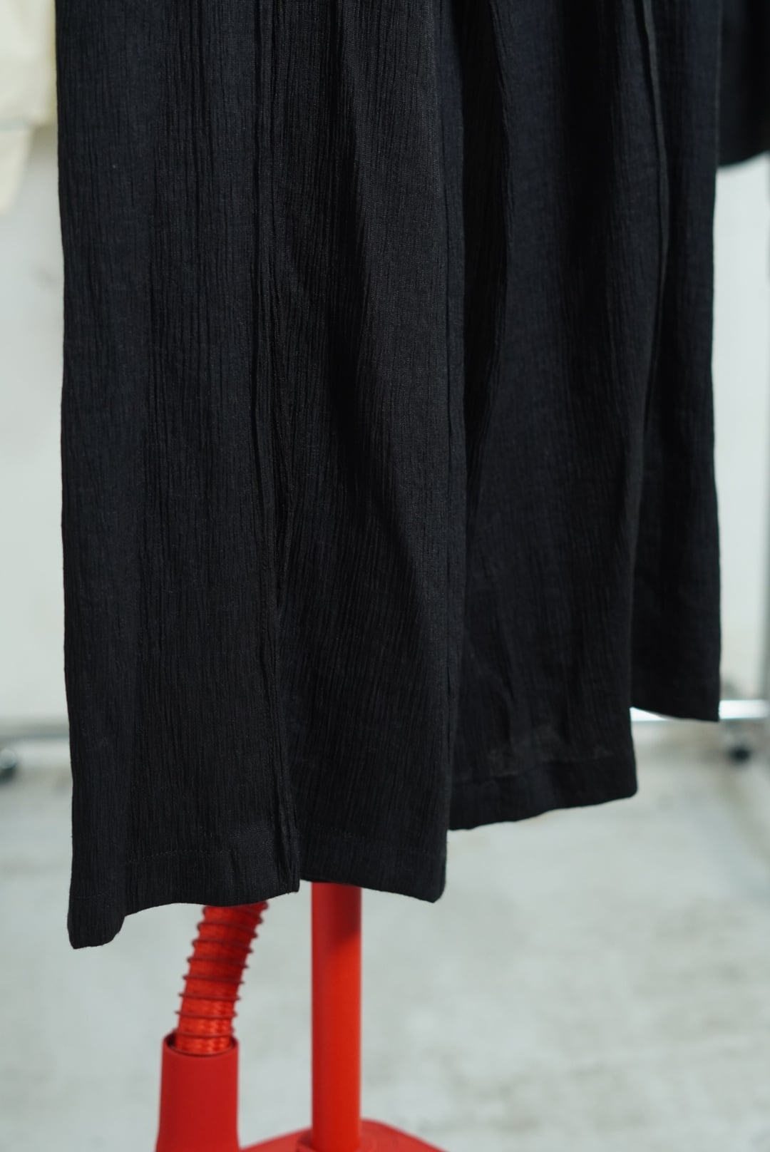 伸縮性と軽さのあるプリーツ素材を使用したワイドスラックス。