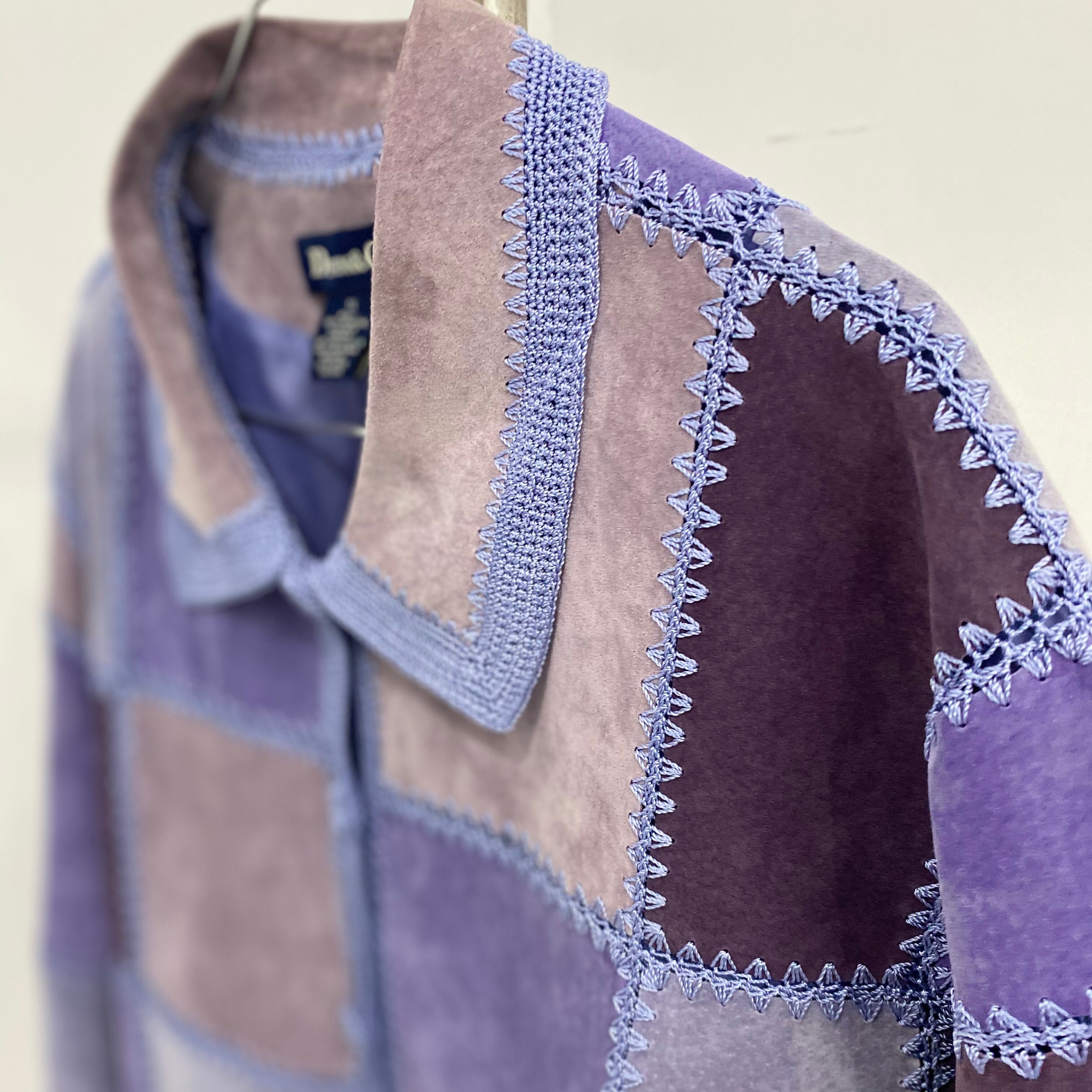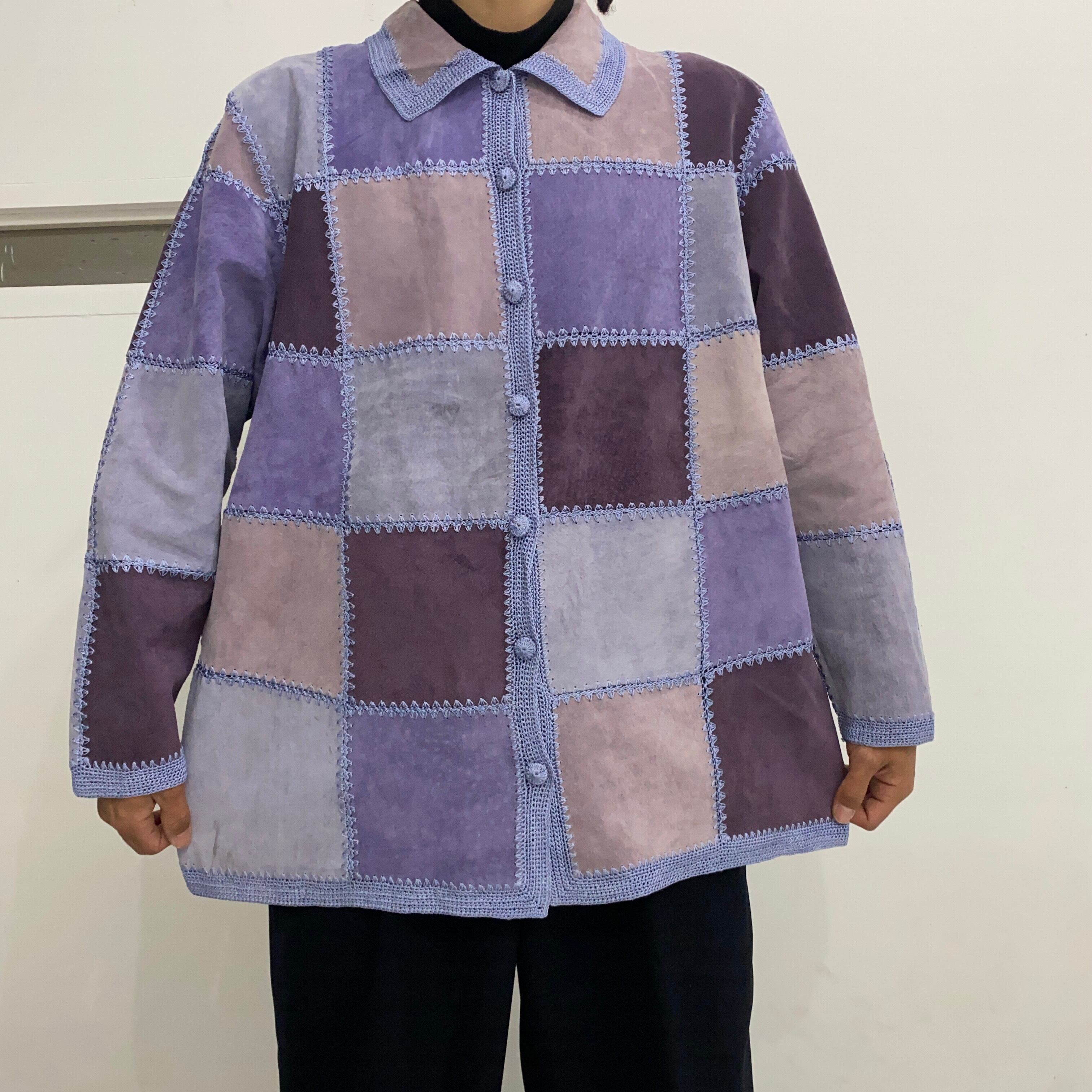 レザーを繋ぎ合わせたようなデザインのシャツ。