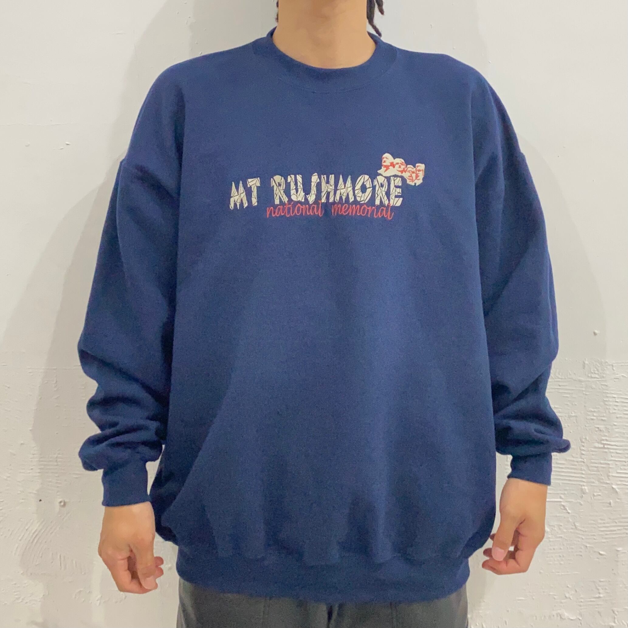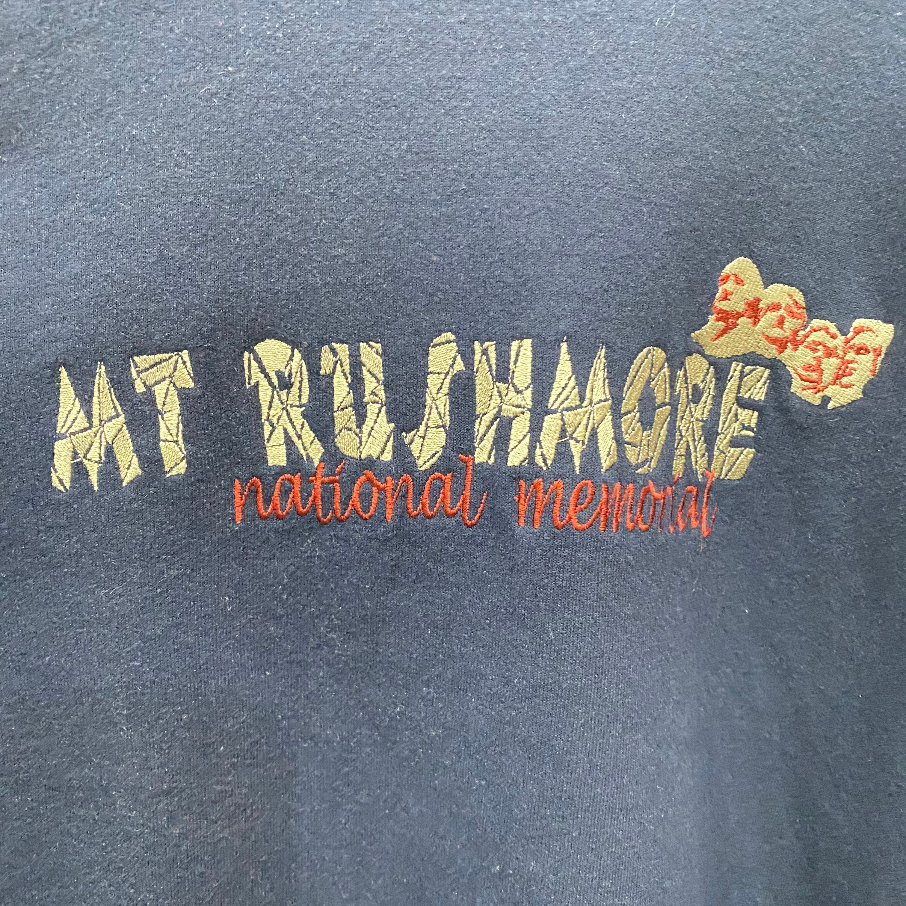 アメリカの観光名所のラッシュモア山が刺繍されています。