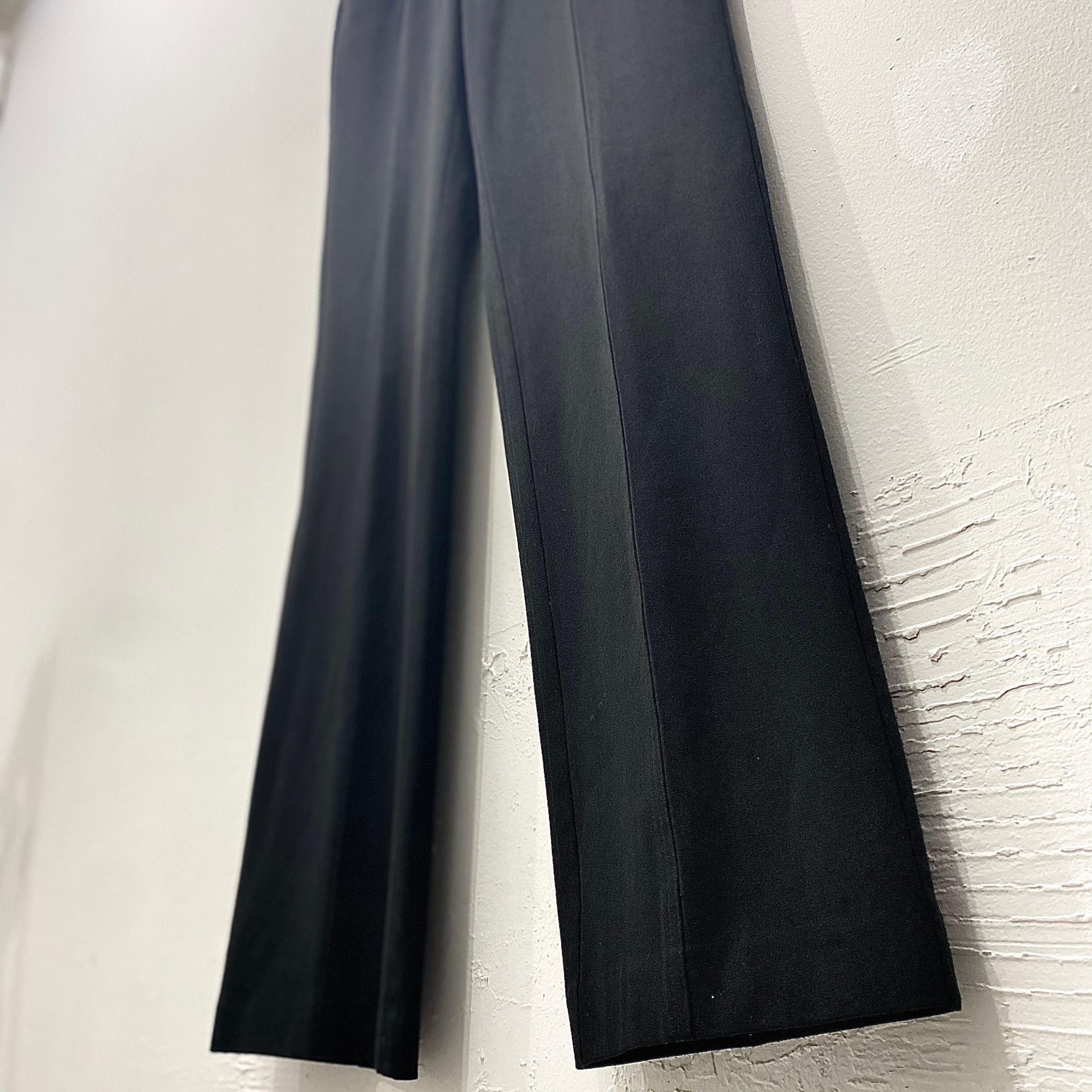 前面と後ろ面にセンタープレスが入ったようなデザインでややフレアシルエット