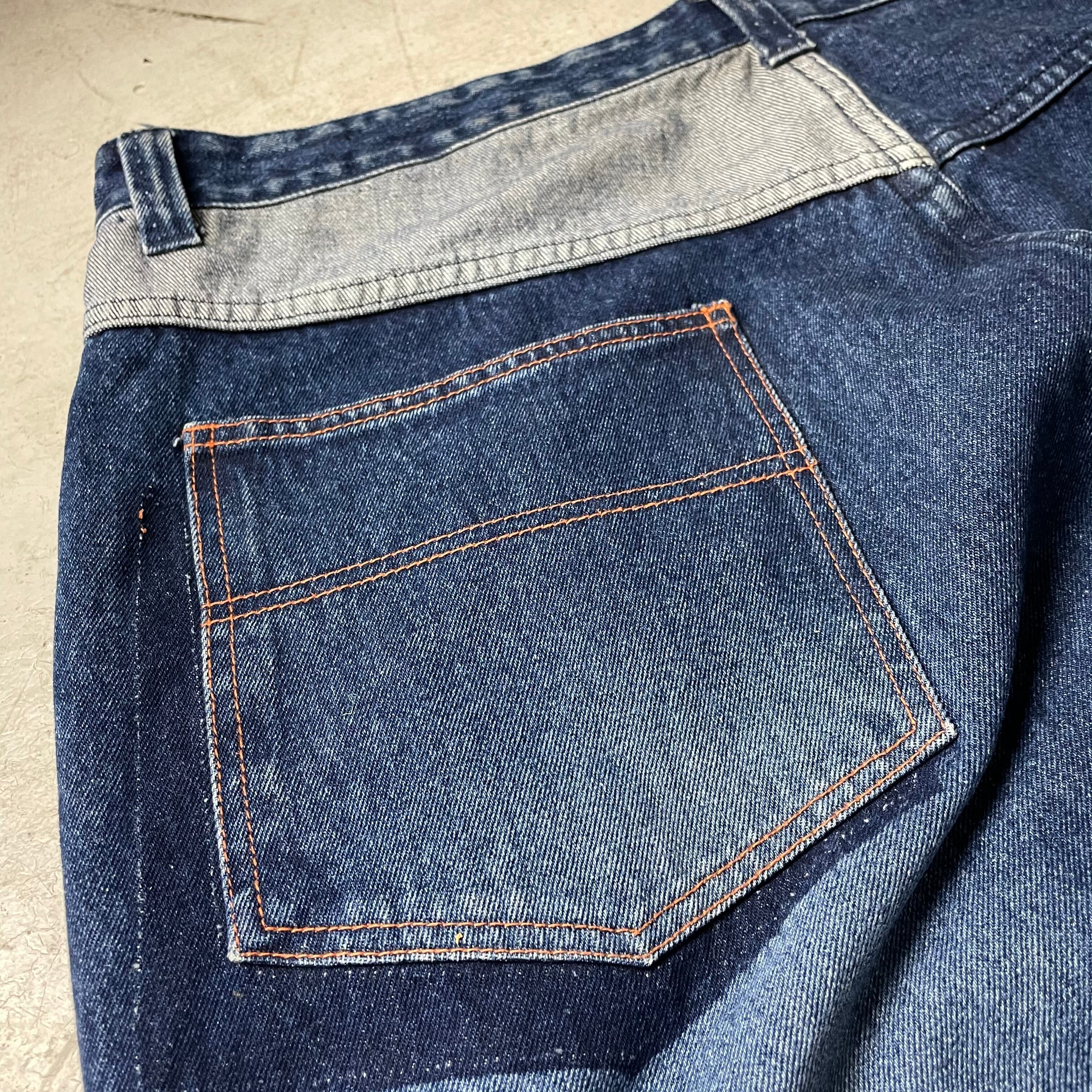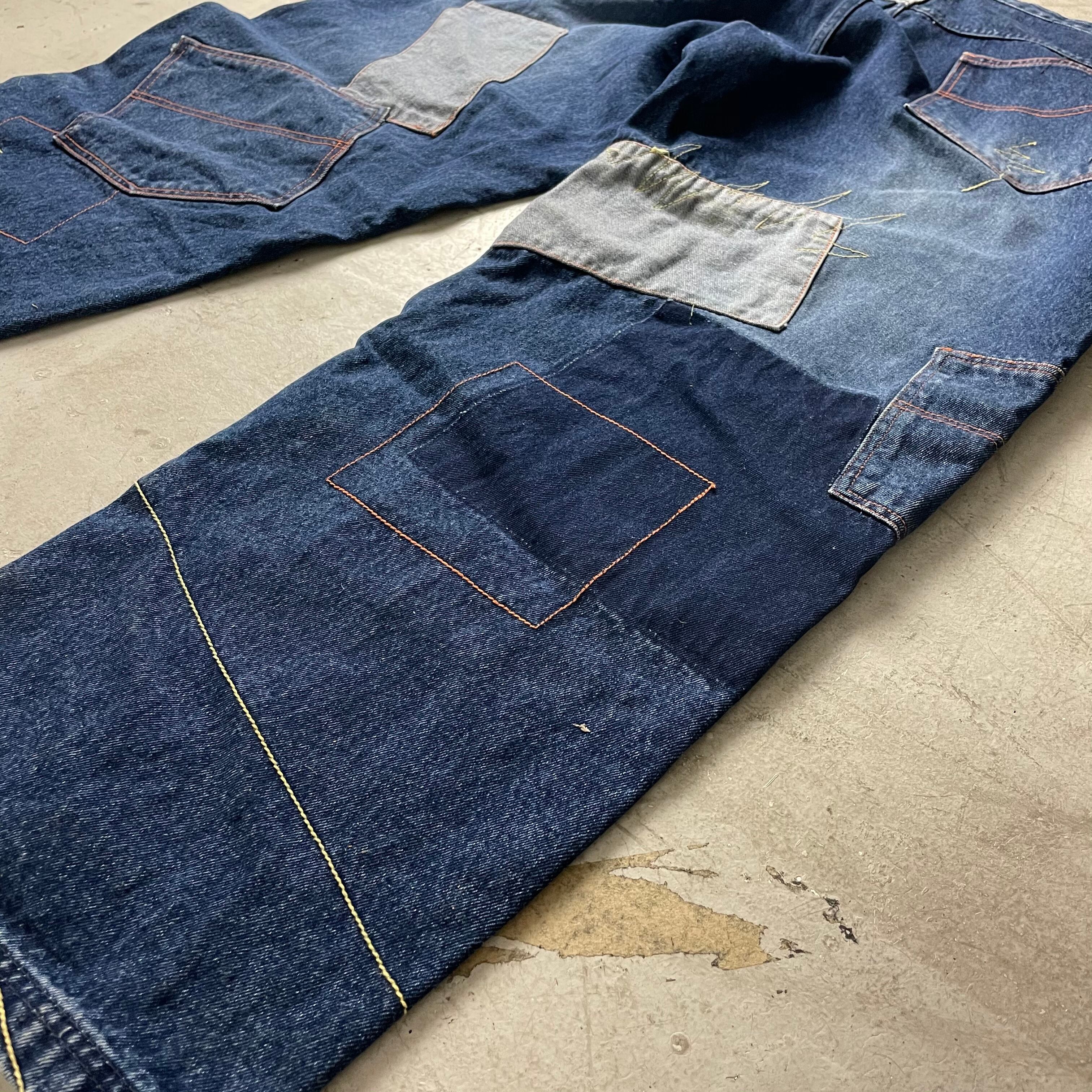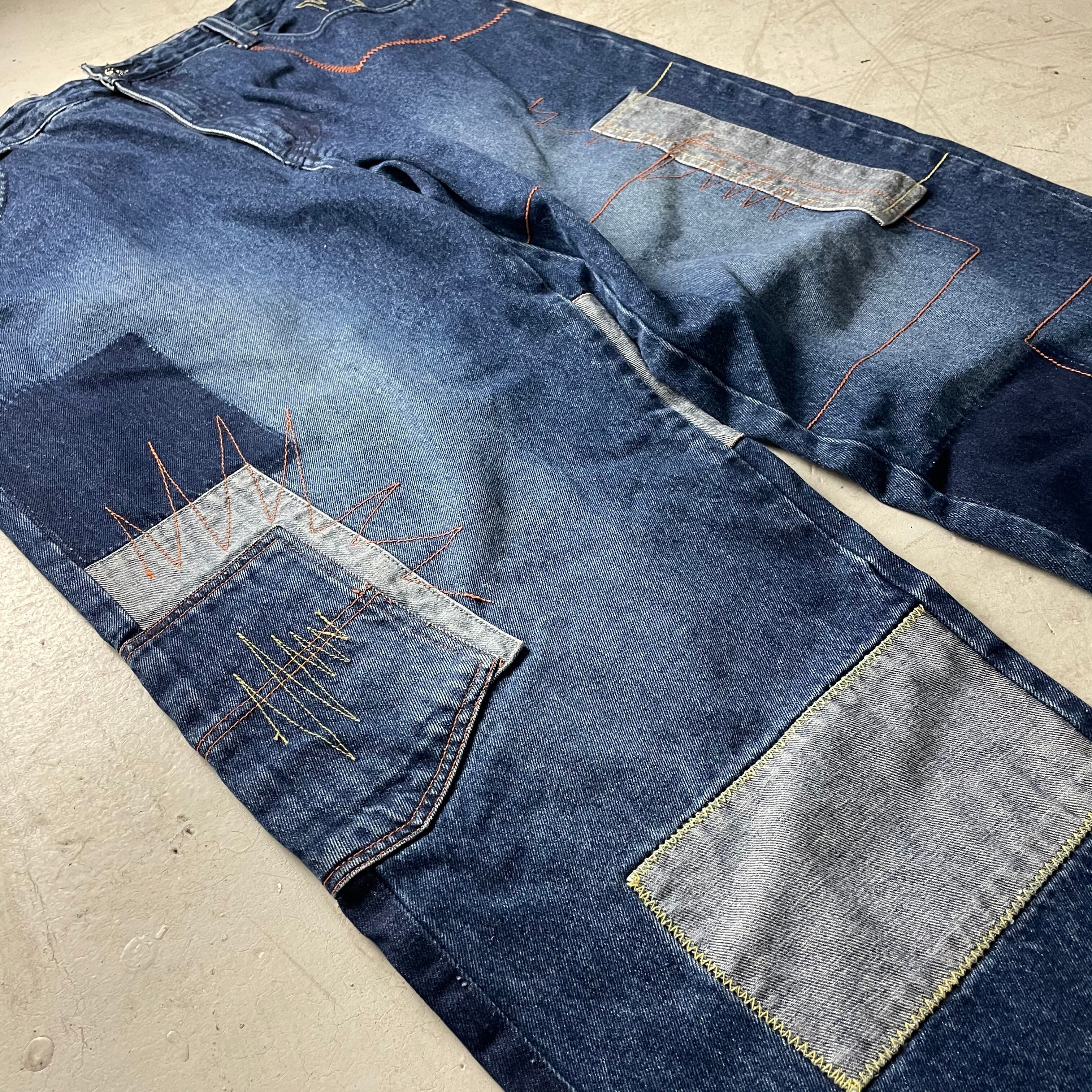 パッチワークと刺繍デザインがインパクトがあるバギーデニム!