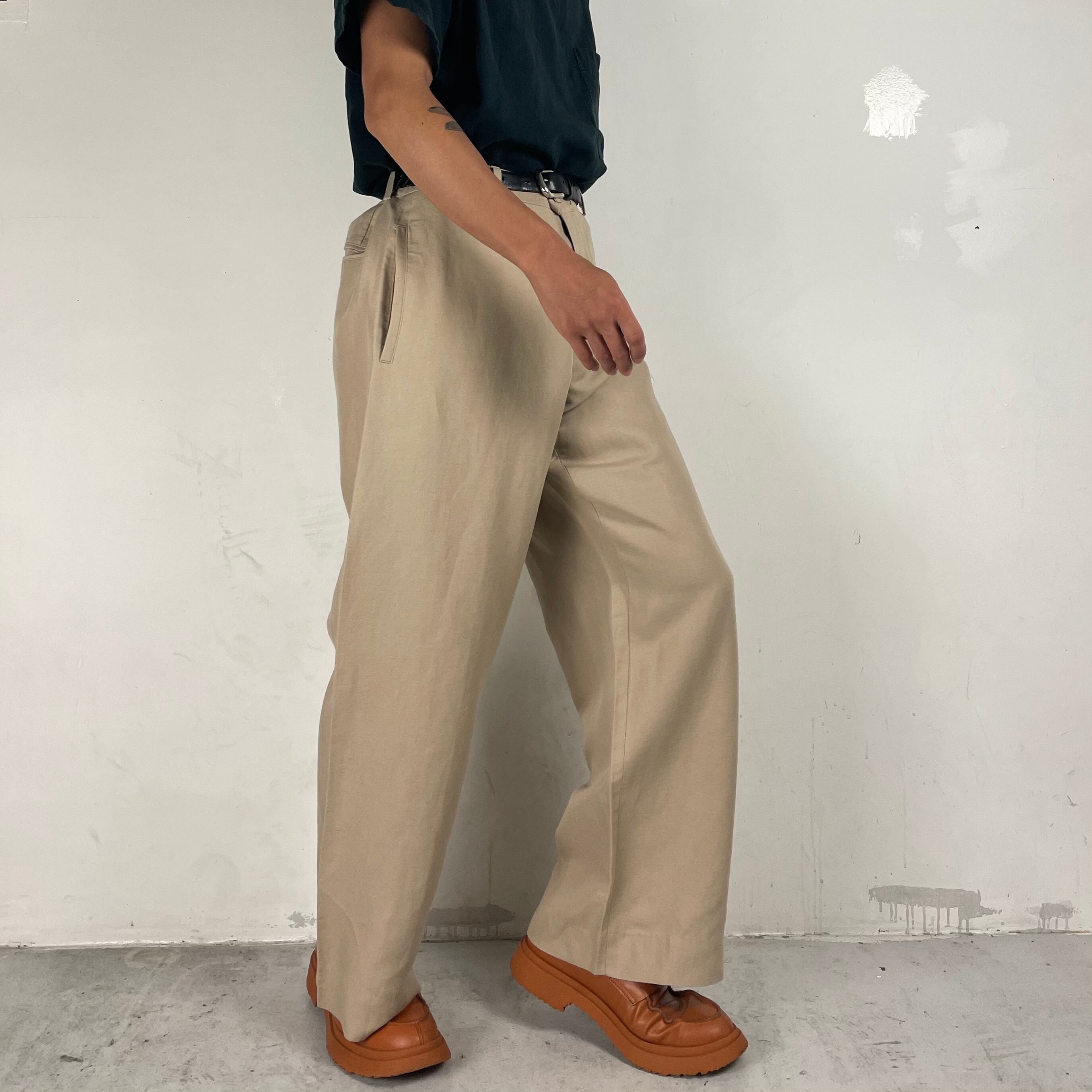 イタリア製の上質なリネンを使用したワイドストレートスラックスです。