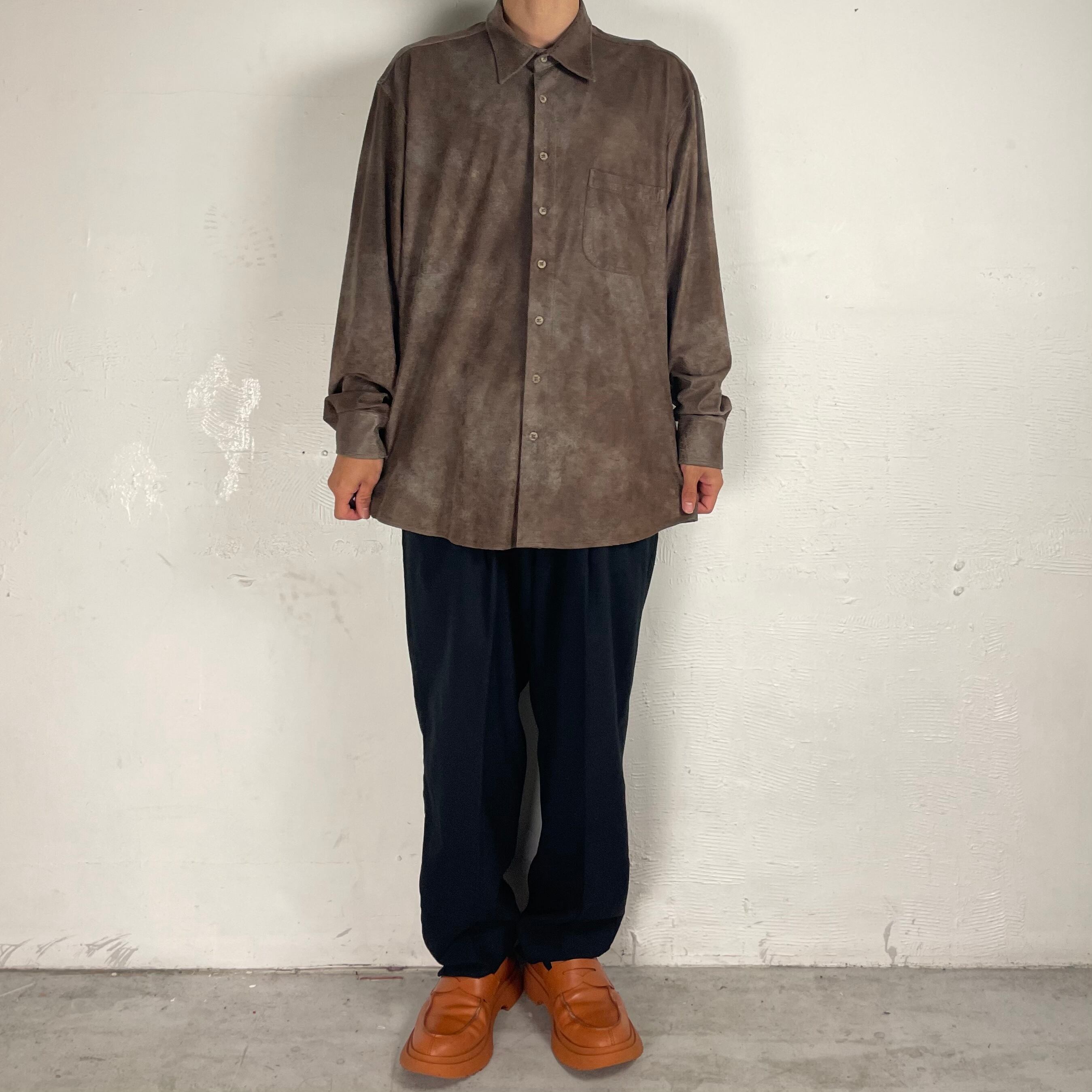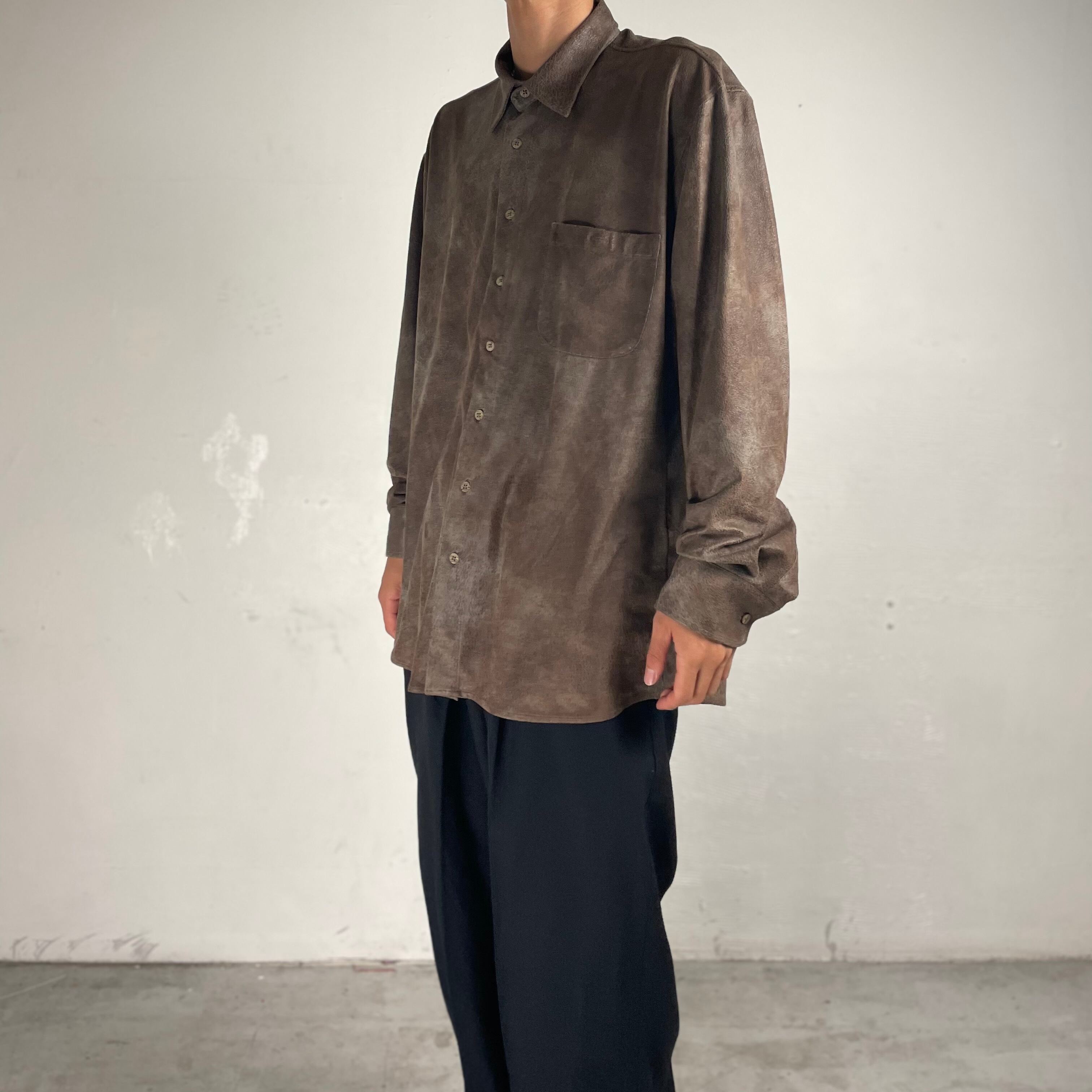 ルーマニア製の、リアルレザーの様な雰囲気があるフェイクスエードシャツ