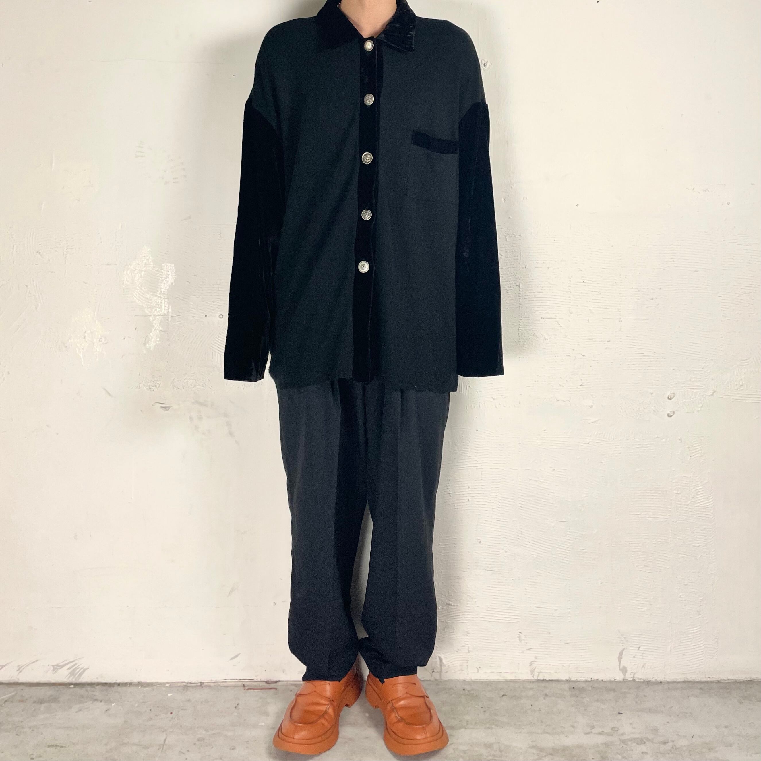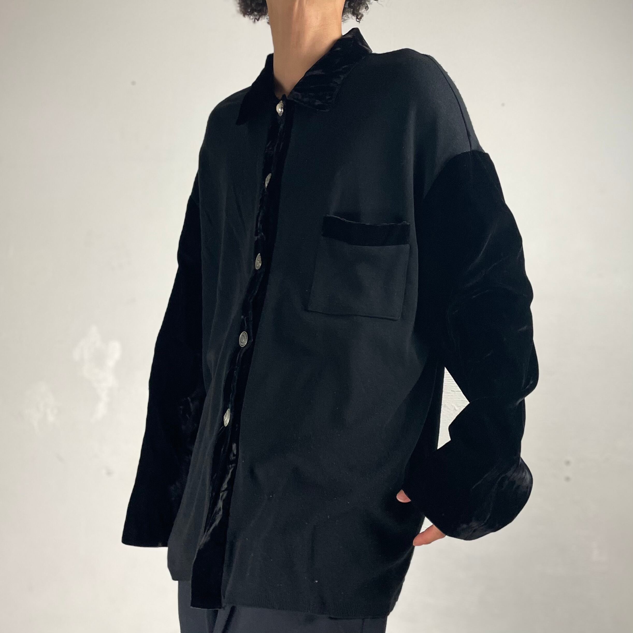 胴体部分は薄いスウェットの様な生地、袖と襟部分はベロア