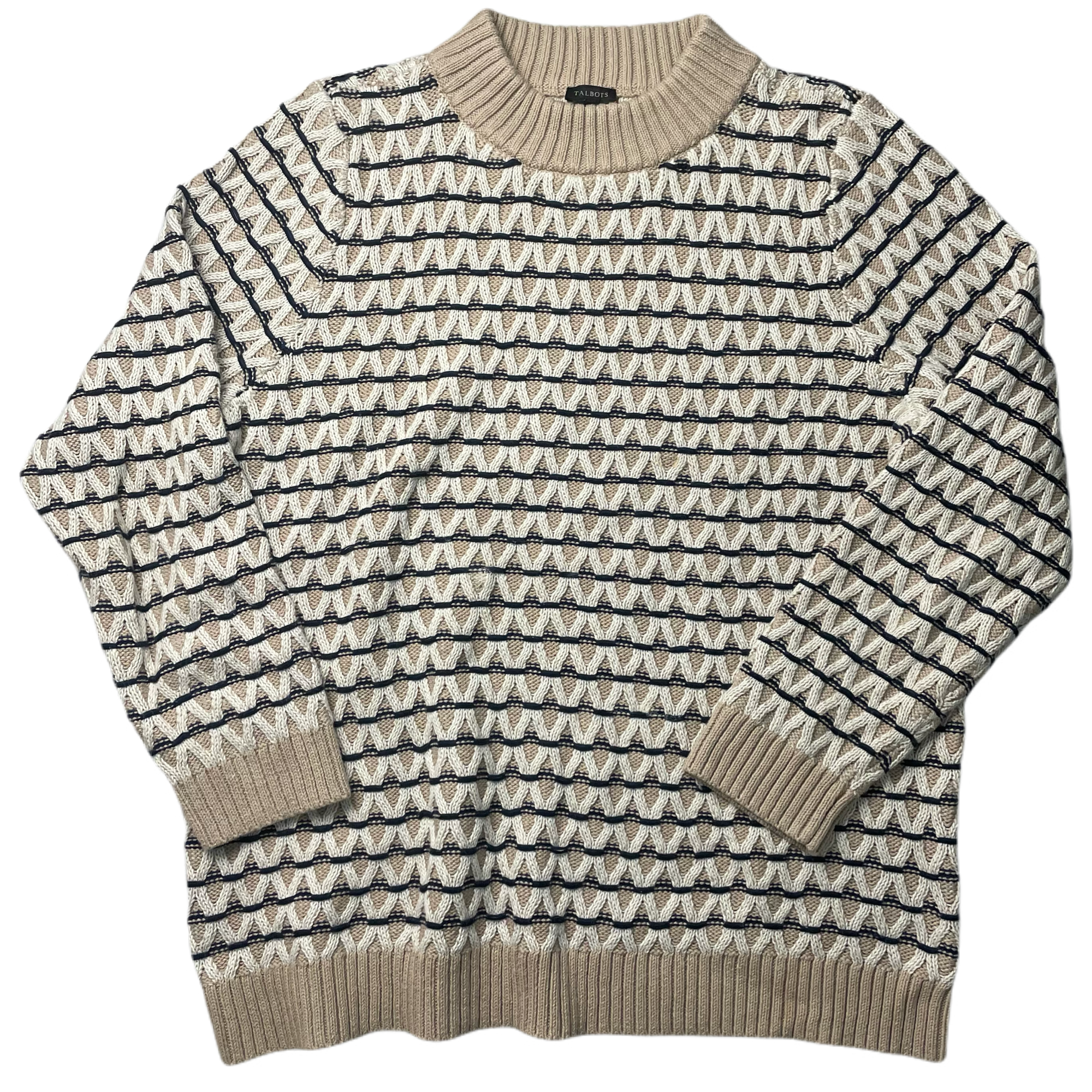 ベージュのプレーンなカラーリングにホワイトとネイビーの均一に織られながらも独特な雰囲気を醸し出すデザイン性の高いニット
