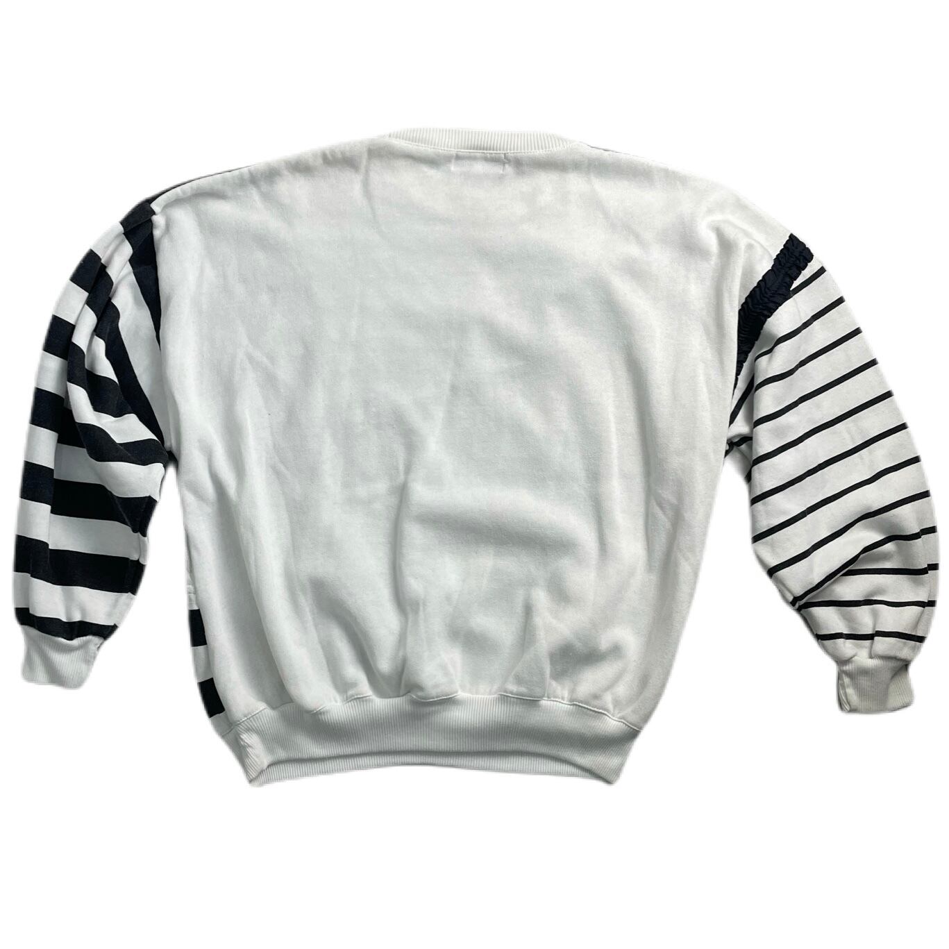 スウェットとニットが絶妙なバランスで混ざり合う様なデザインに左右非対称なボーダー