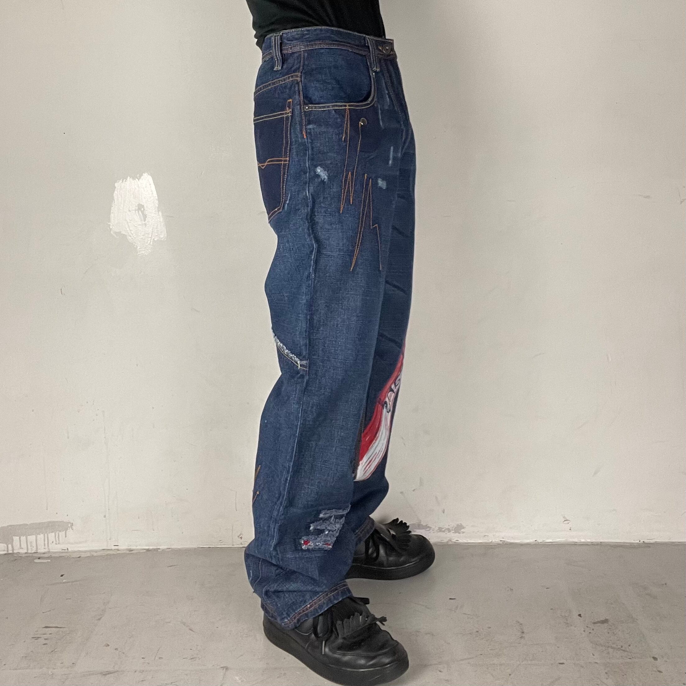 ペンキで描かれたようなグラフィックがクールなデニムパンツ
