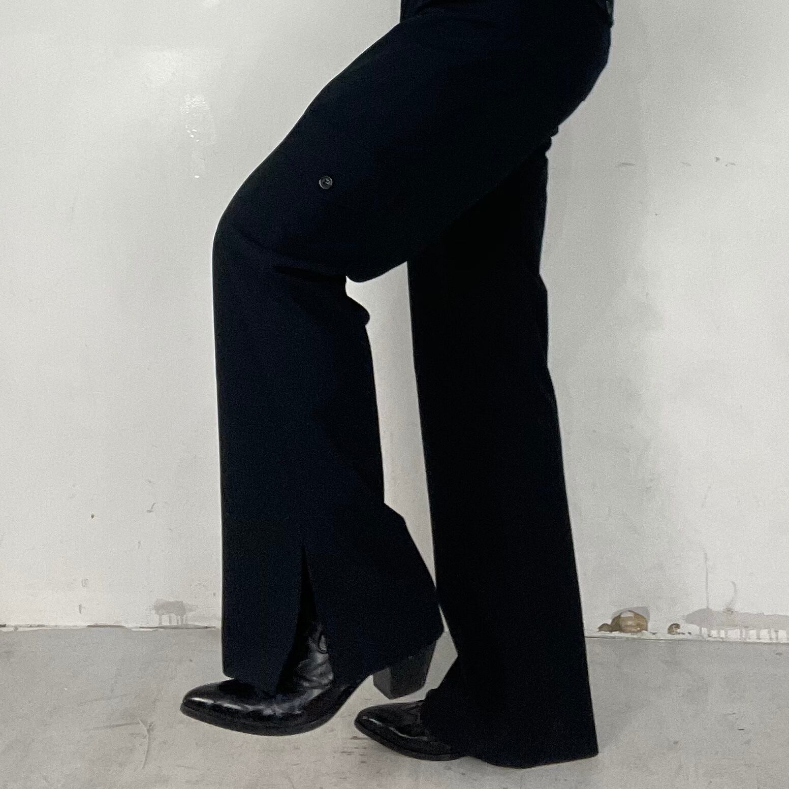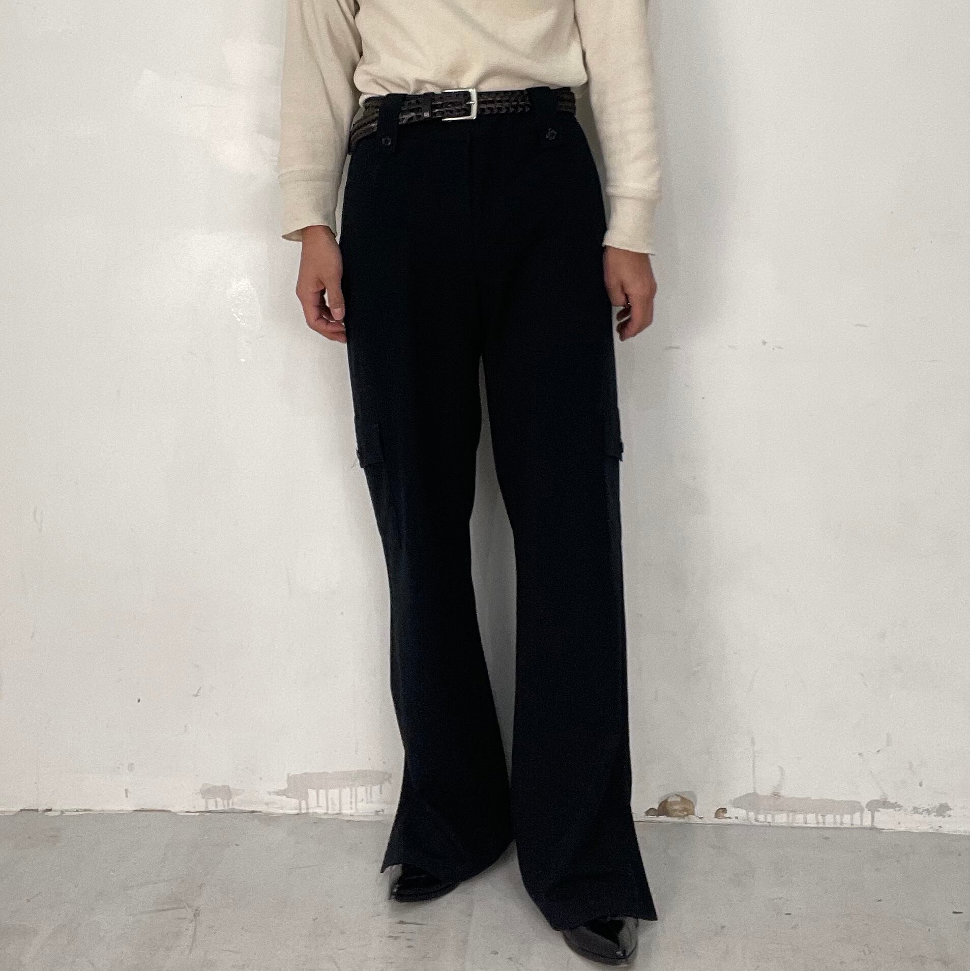 テロッとした生地感のモードな雰囲気のカーゴスラックス