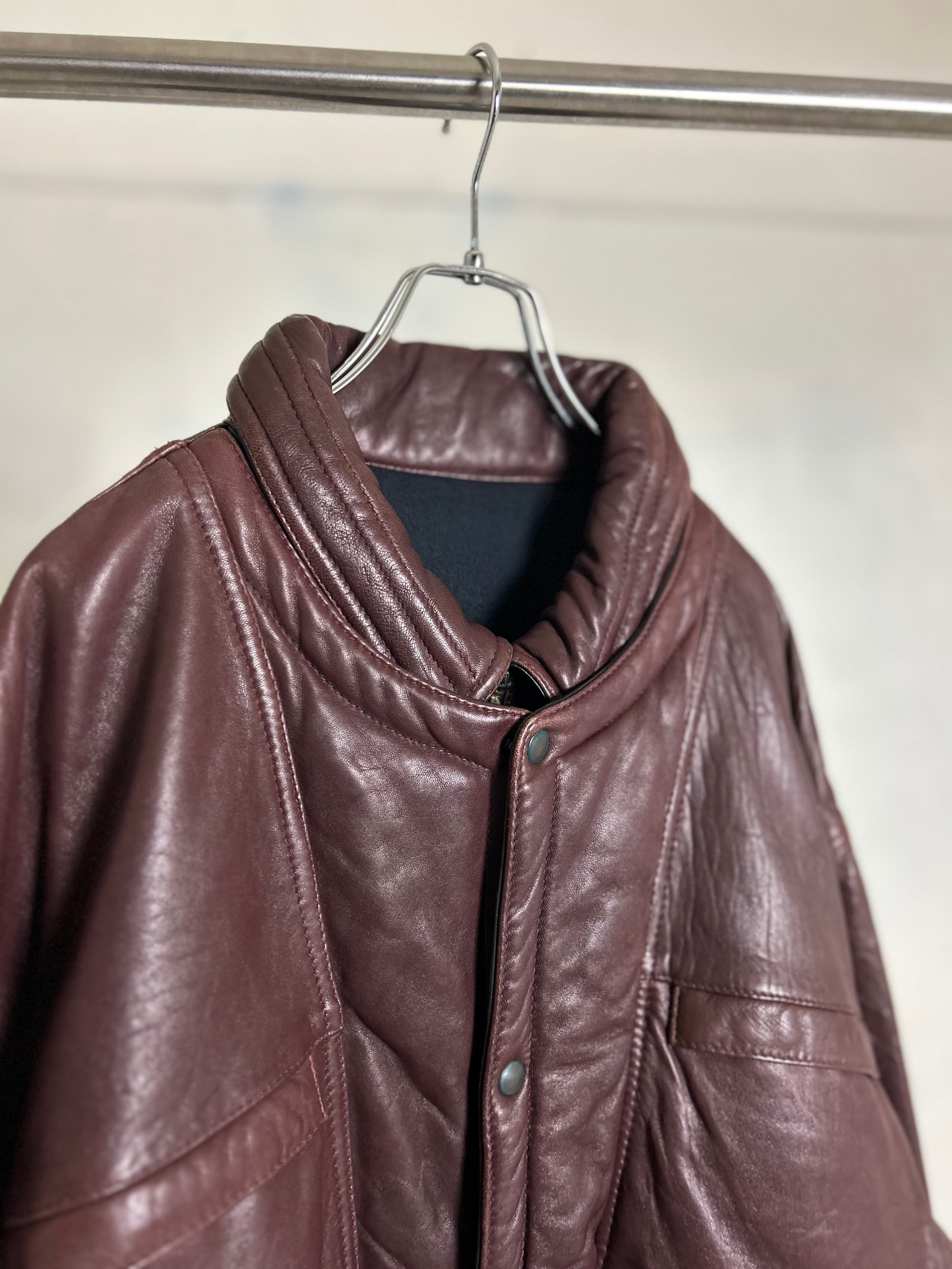 柔らかく滑らかなレザーを使用した中綿入りのレイヤードデザインブルゾン。