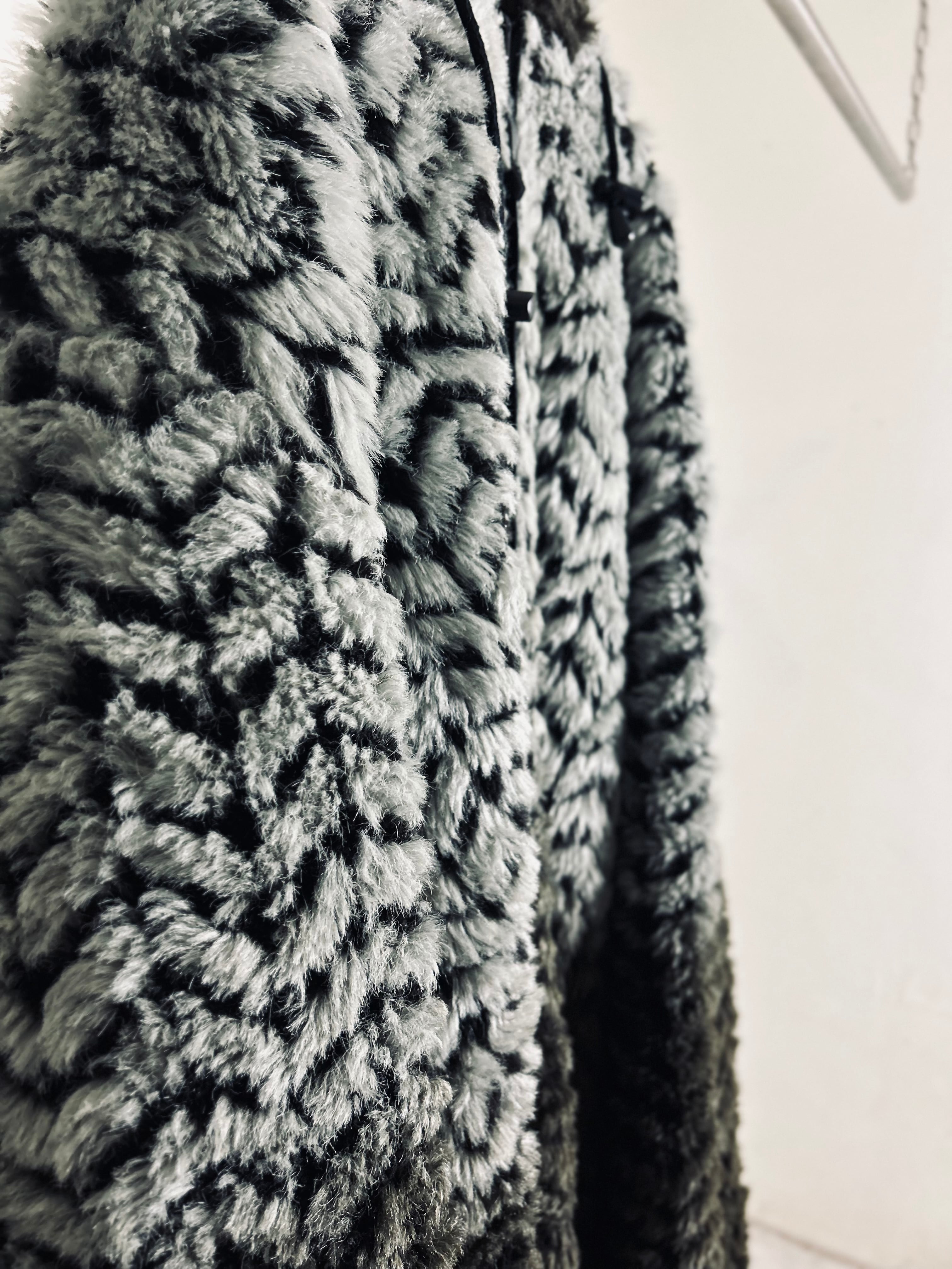 状態の良いフワフワの毛足が魅力的なフェイクファーのリバーシブルオーバーサイズフーディ。